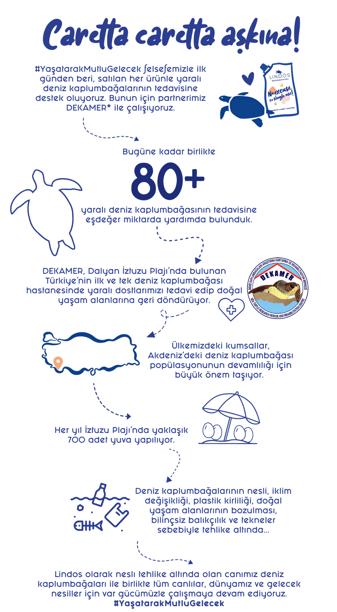 Lindos olarak nesli tehlike altında olan canımız deniz kaplumbağaları ile birlikte tüm canlılar, dünyamız ve gelecek nesiller için var gücümüzle çalışmaya devam ediyoruz.